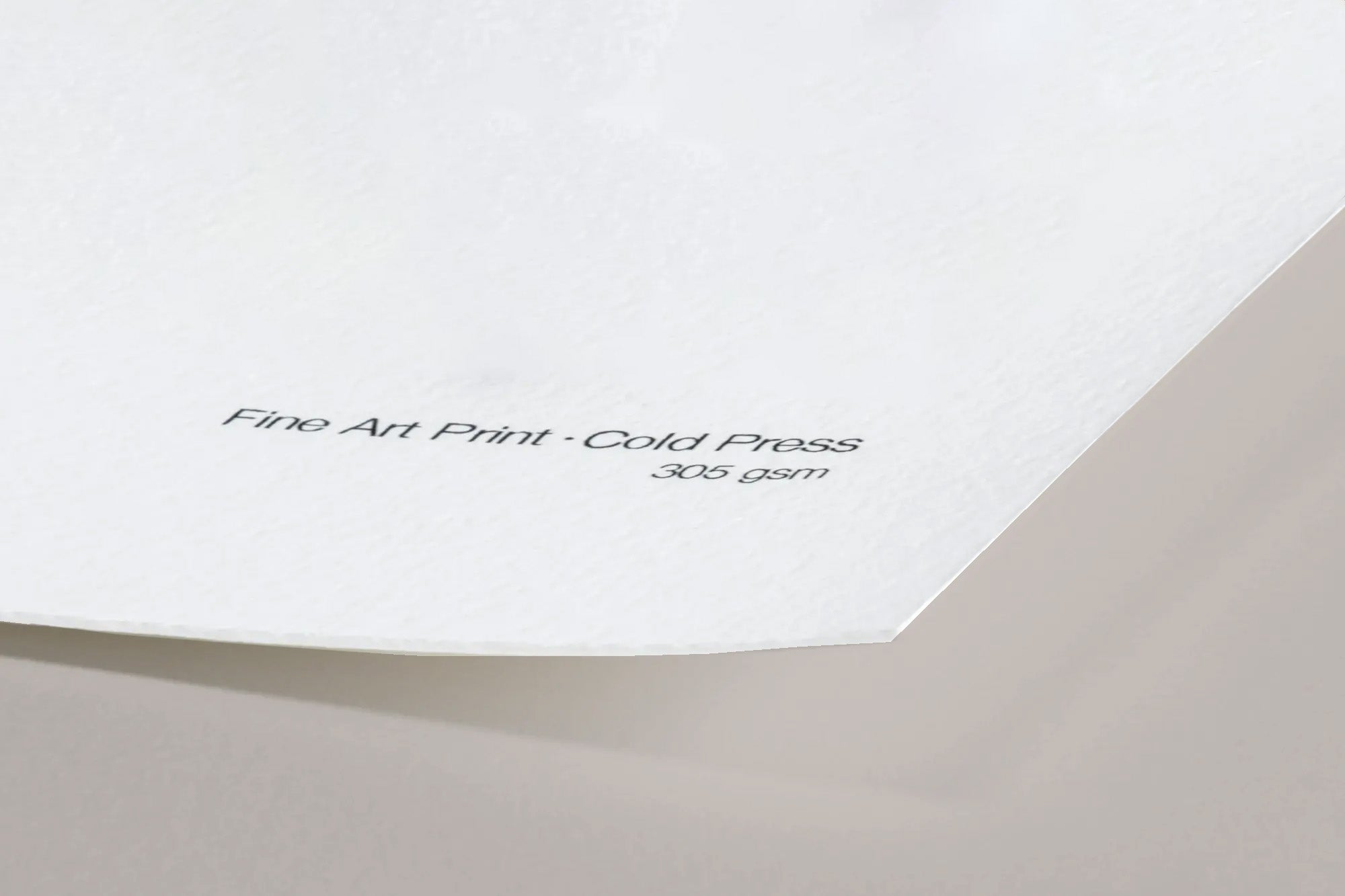 Our Prints: Our archival-quality giclée prints come on a bright-white cold press 300 gsm 100% cotton fine-art paper.